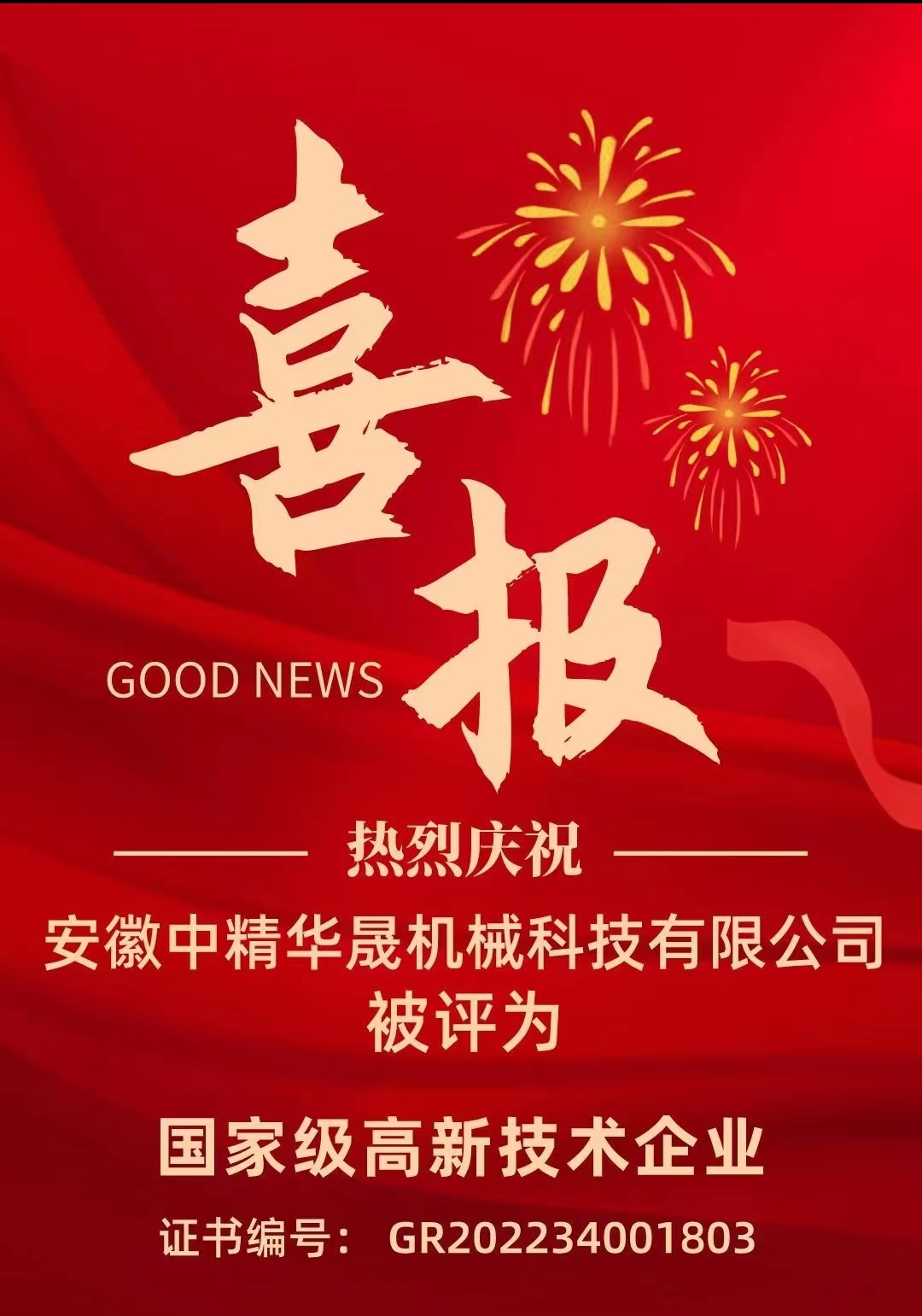 熱烈祝賀安徽中精華晟機(jī)械科技有限公司被評(píng)為國(guó)家級(jí)高新技術(shù)企業(yè)